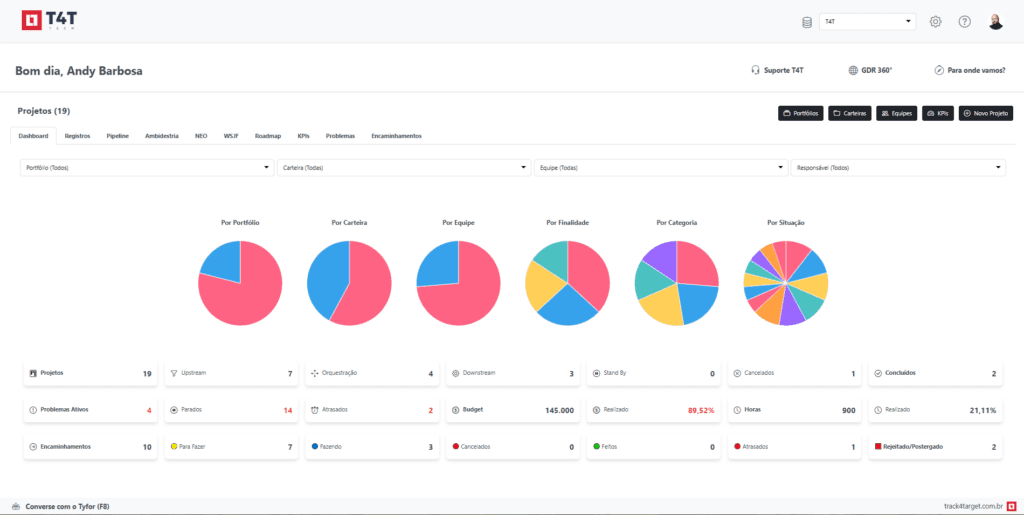 O Módulo de Gestão de Projetos da plataforma T4T GDR foi desenvolvido para garantir que os projetos estejam alinhados à estratégia organizacional e sejam executados com eficiência. Integrado ao ecossistema de governança, o módulo permite um acompanhamento completo, desde o planejamento até a execução, monitorando riscos, entregas, recursos e stakeholders.