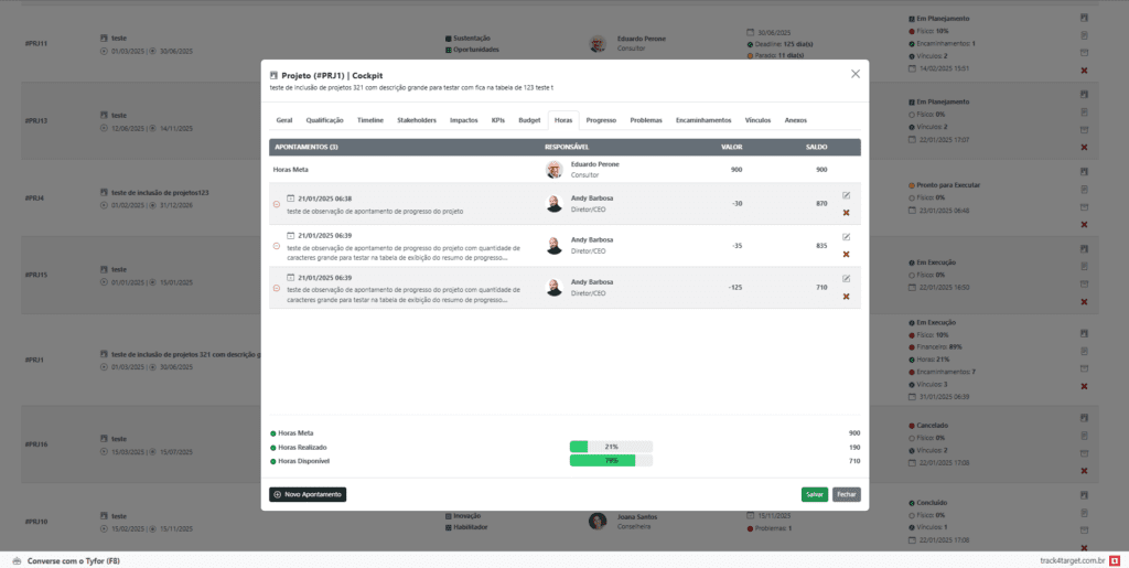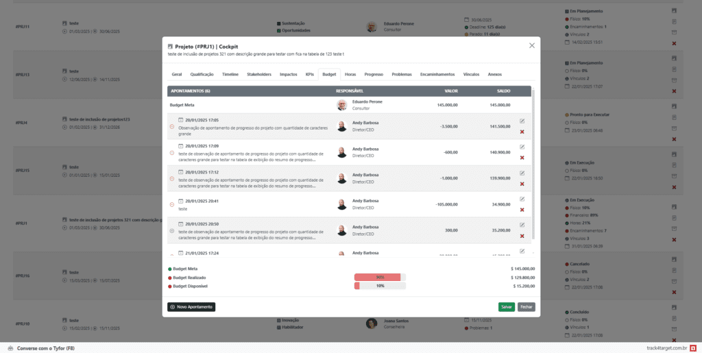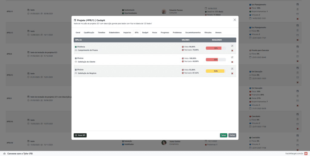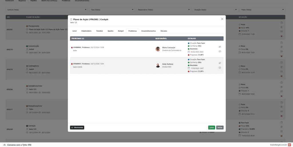 Identificação e acompanhamento de riscos em tempo real, tanto estratégicos quanto operacionais. Mitigação de problemas antes que eles causem impactos maiores. Matriz de riscos dinâmica para melhor auxiliar na tomada de decisões.