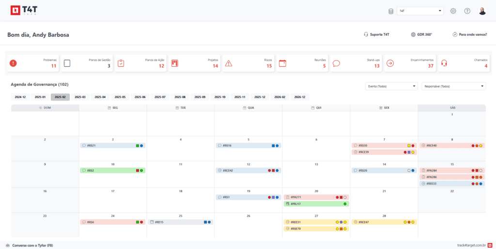 A T4T Tech revoluciona a governança corporativa ao integrar e automatizar processos críticos, garantindo não apenas eficiência, mas também segurança robusta. Nossa plataforma de governança foi meticulosamente desenvolvida para otimizar a gestão de resultados, alinhando de maneira harmoniosa as estratégias organizacionais com a execução operacional. Com funcionalidades de ponta e automação inteligente, nosso sistema é versátil o suficiente para atender empresas de todos os tamanhos, oferecendo soluções sob medida para executivos, conselhos de administração, gestores e equipes.