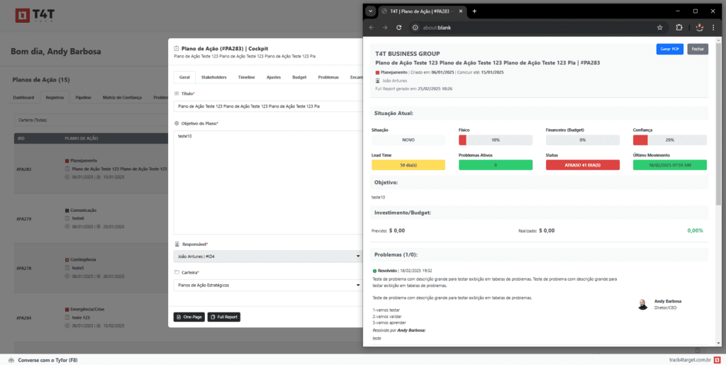 O Módulo de Planos de Ação é a peça-chave para garantir que estratégias se transformem em ações concretas. Ele permite a criação, acompanhamento e execução de planos de ação vinculados a objetivos estratégicos, projetos e key results, garantindo uma gestão ágil e orientada para resultados.
